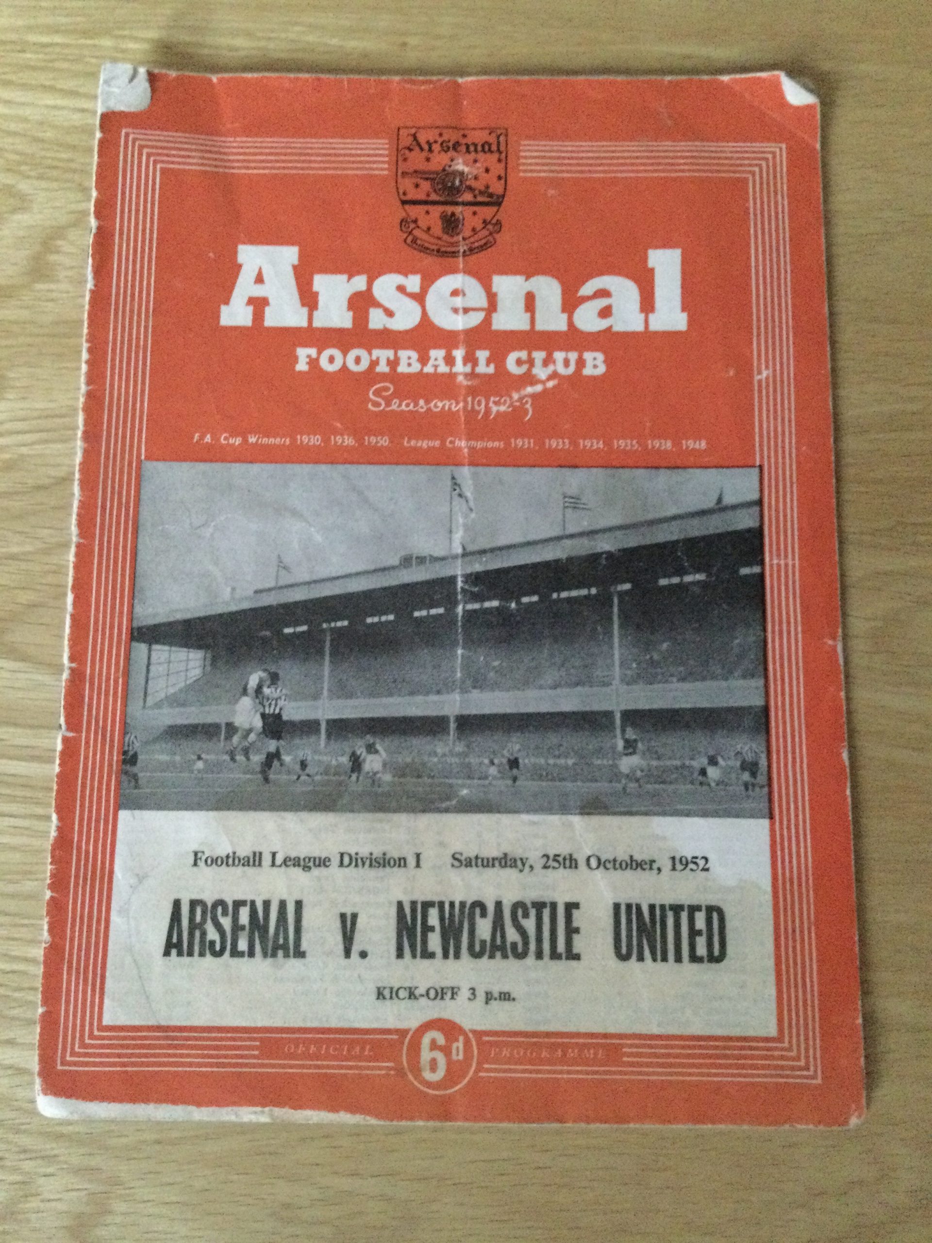 On offer an original Arsenal v Newcastle United matchday programme 25 OCT 1952