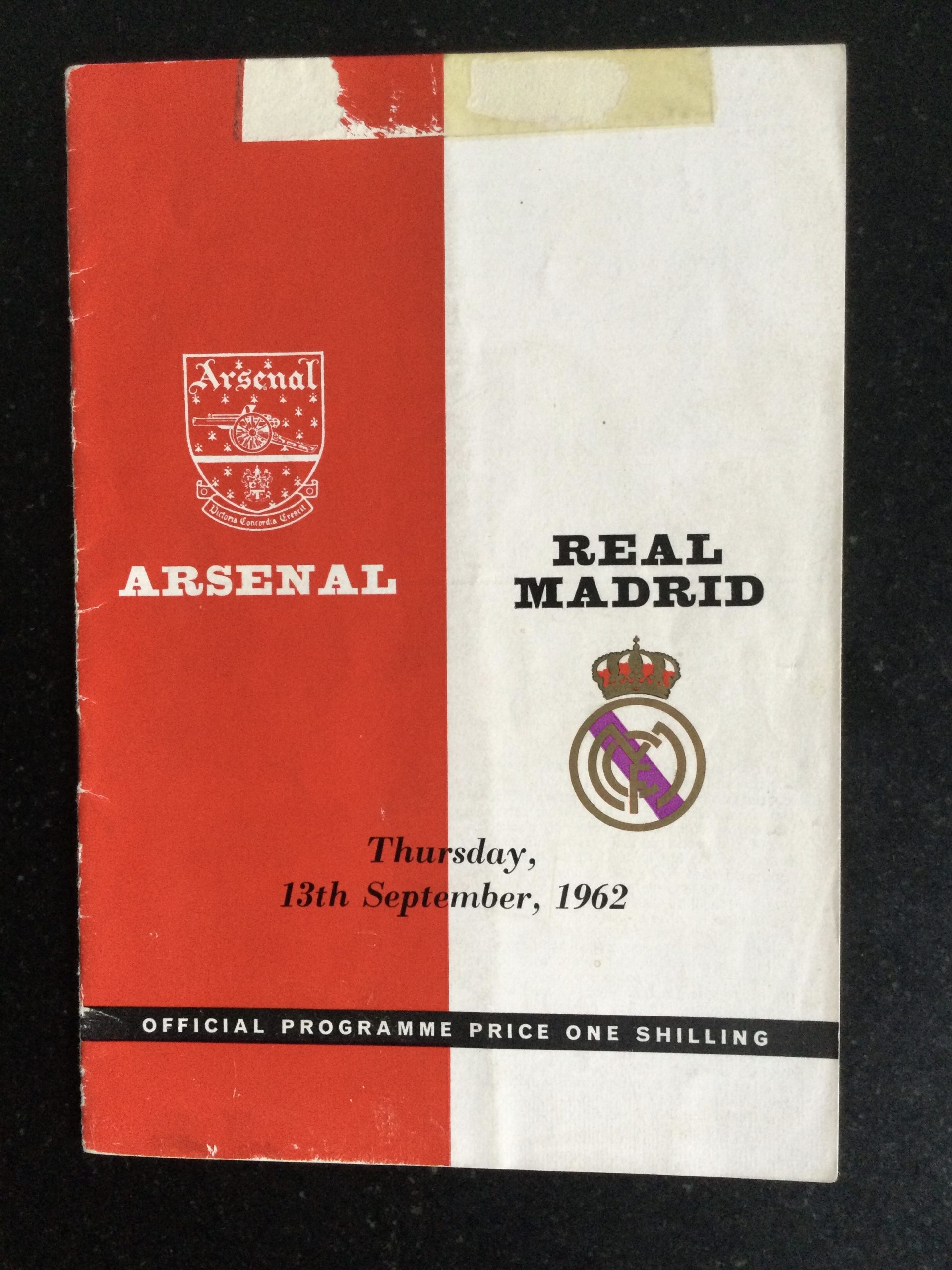 On offer an original match day programme Arsenal v Real Madrid 13 SEP 1962