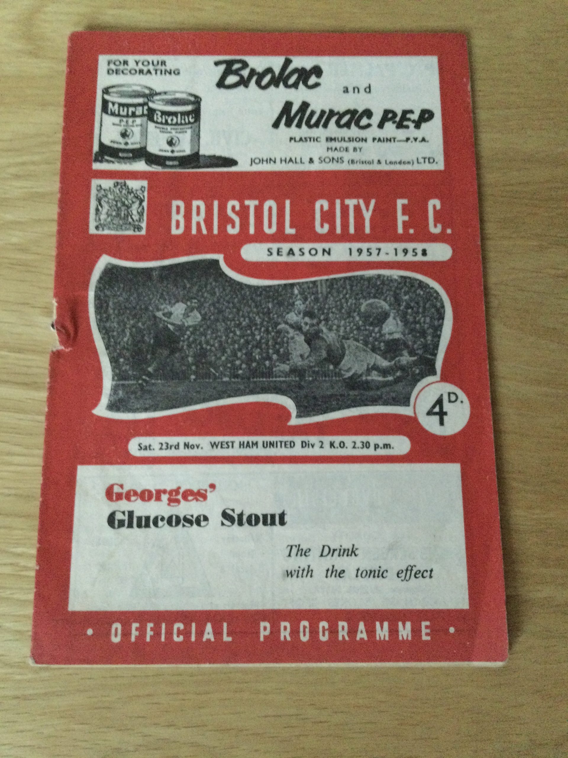 On offer an original matchday programme Bristol City v West Ham United 23 NOV 1957