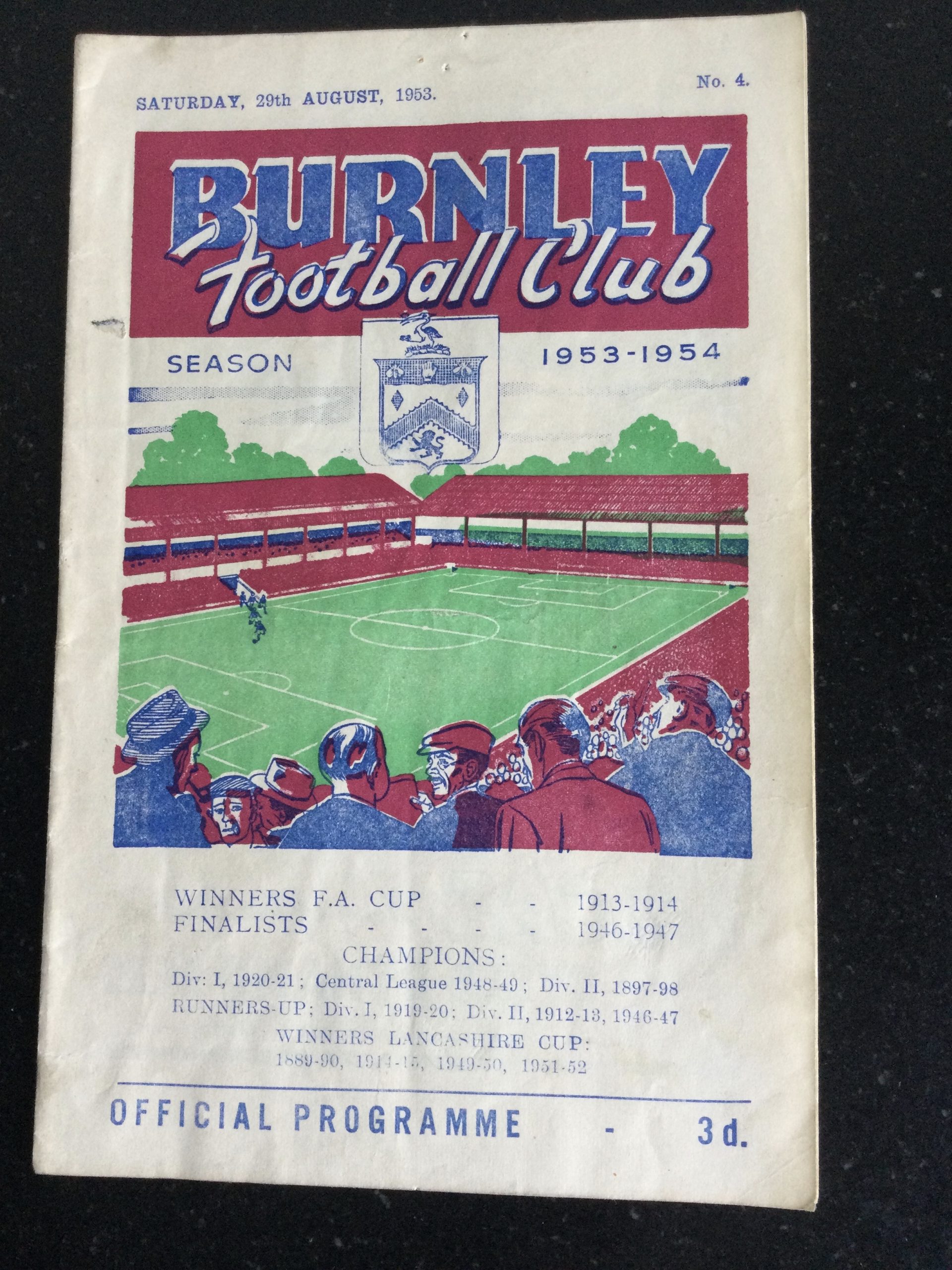 On offer an original matchday programme Burnley v Sheffield Wednesday 29 AUG 1953