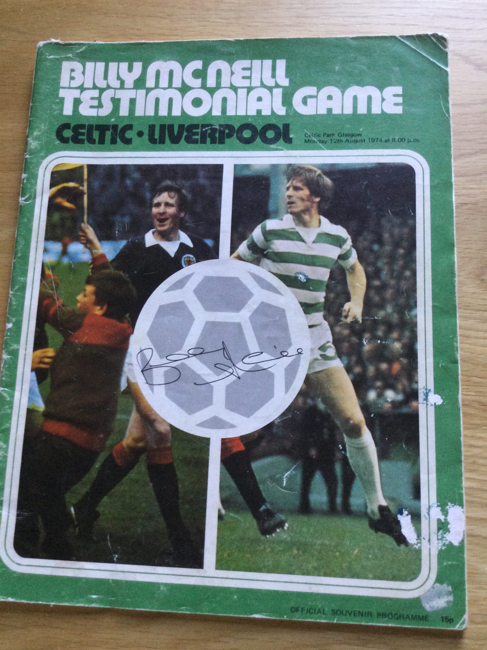 On offer an original matchday programme signed by Billy McNeill, Celtic v Liverpool 12 AUG 1974