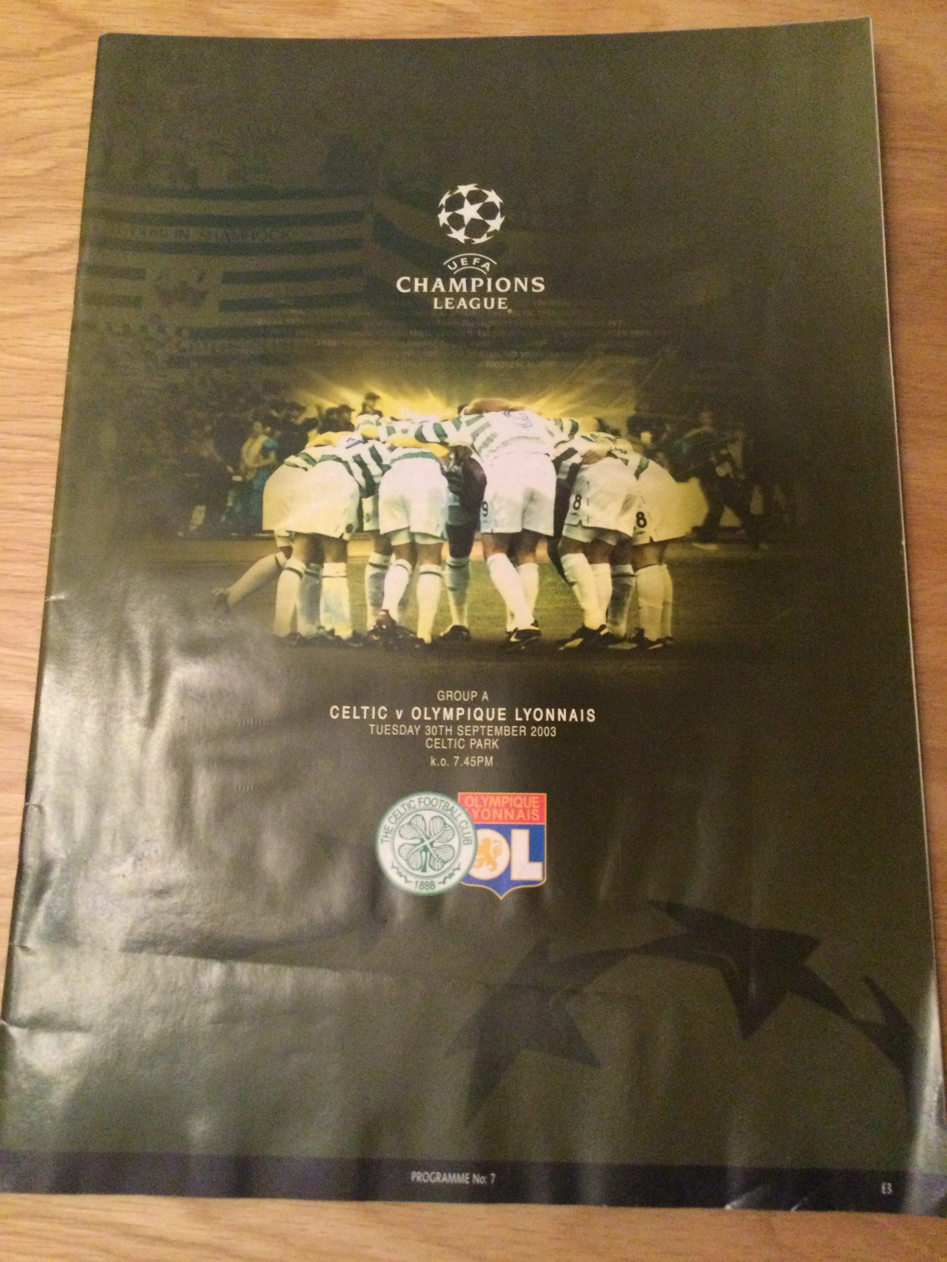 On offer an original matchday programme Celtic v Olympique Lyonnais 30 SEP 2003