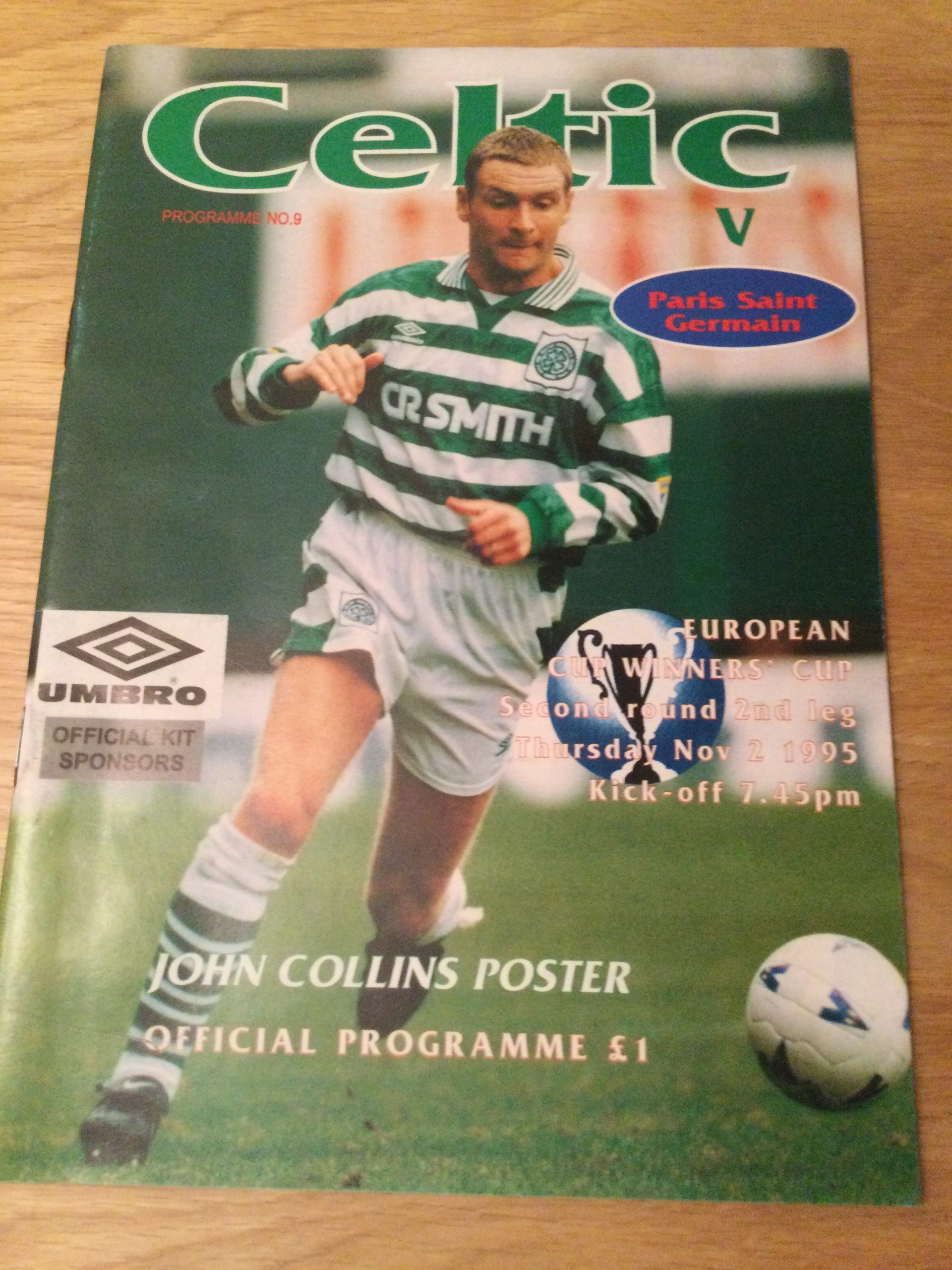 Celtic v Paris Saint Germain E.C.W.C. Matchday Programme 1995