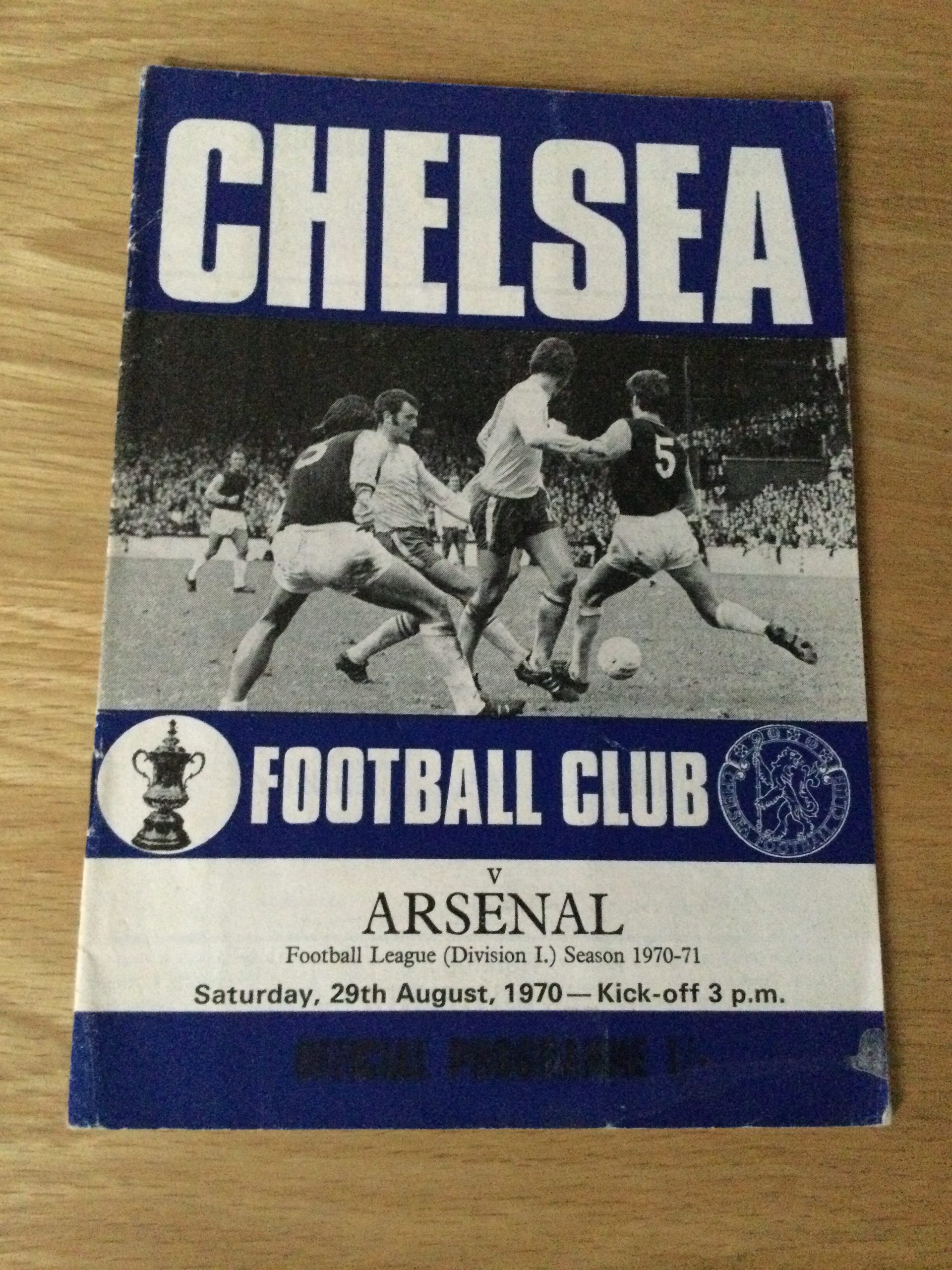 On offer an original matchday programme Chelsea v Arsenal 29 AUG 1970