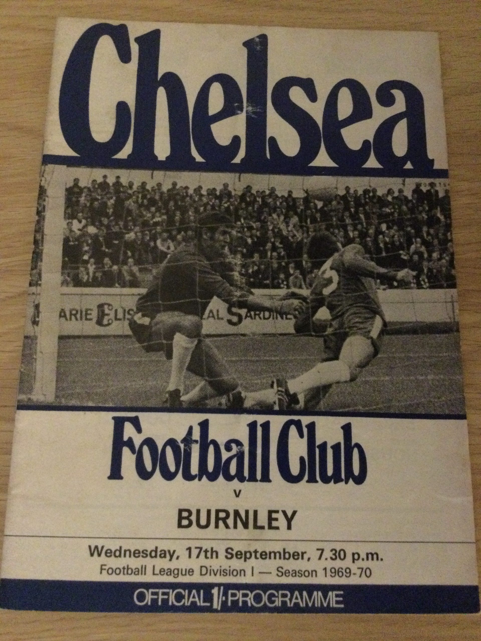 On offer an original match day programme Chelsea v Burnley 17 SEP 1969