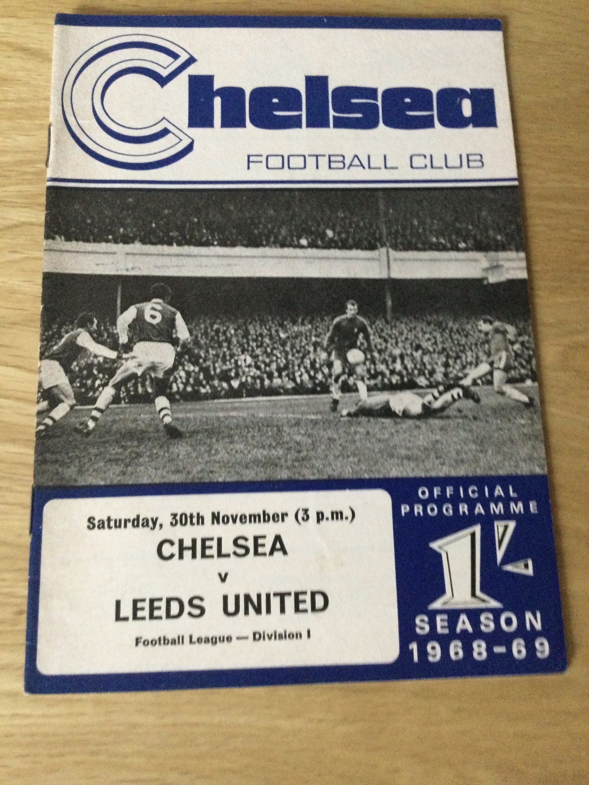 On offer an original matchday programme Chelsea v Leeds United 30 NOV 1968