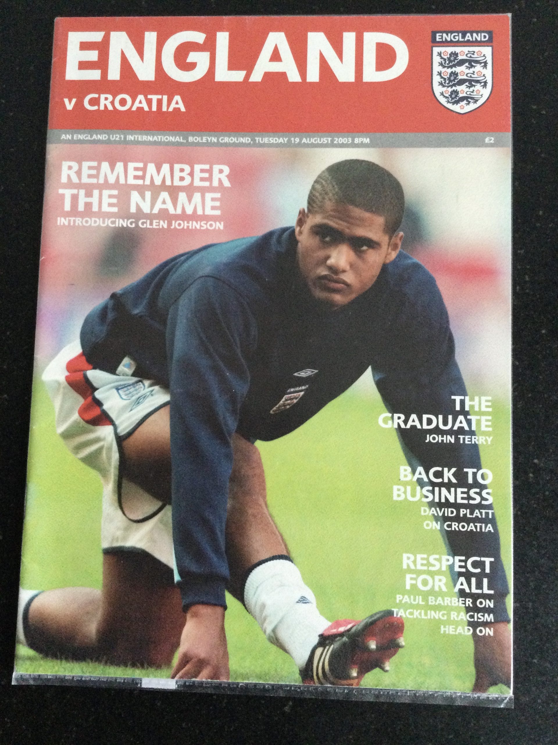 On offer an original matchday programme England v Croatia 19 AUG 2003