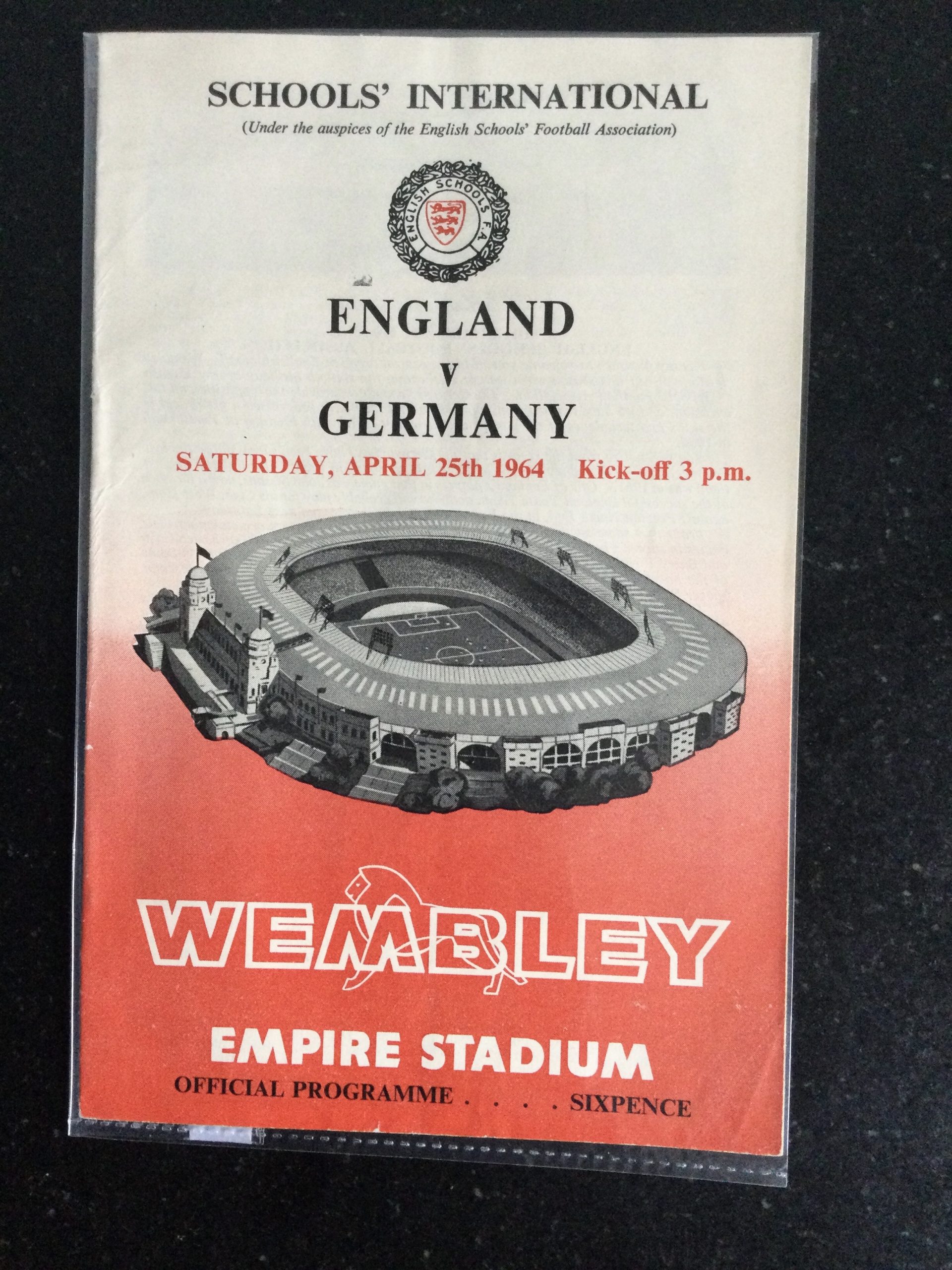 On offer an original matchday programme England v Germany 25 APR 1964