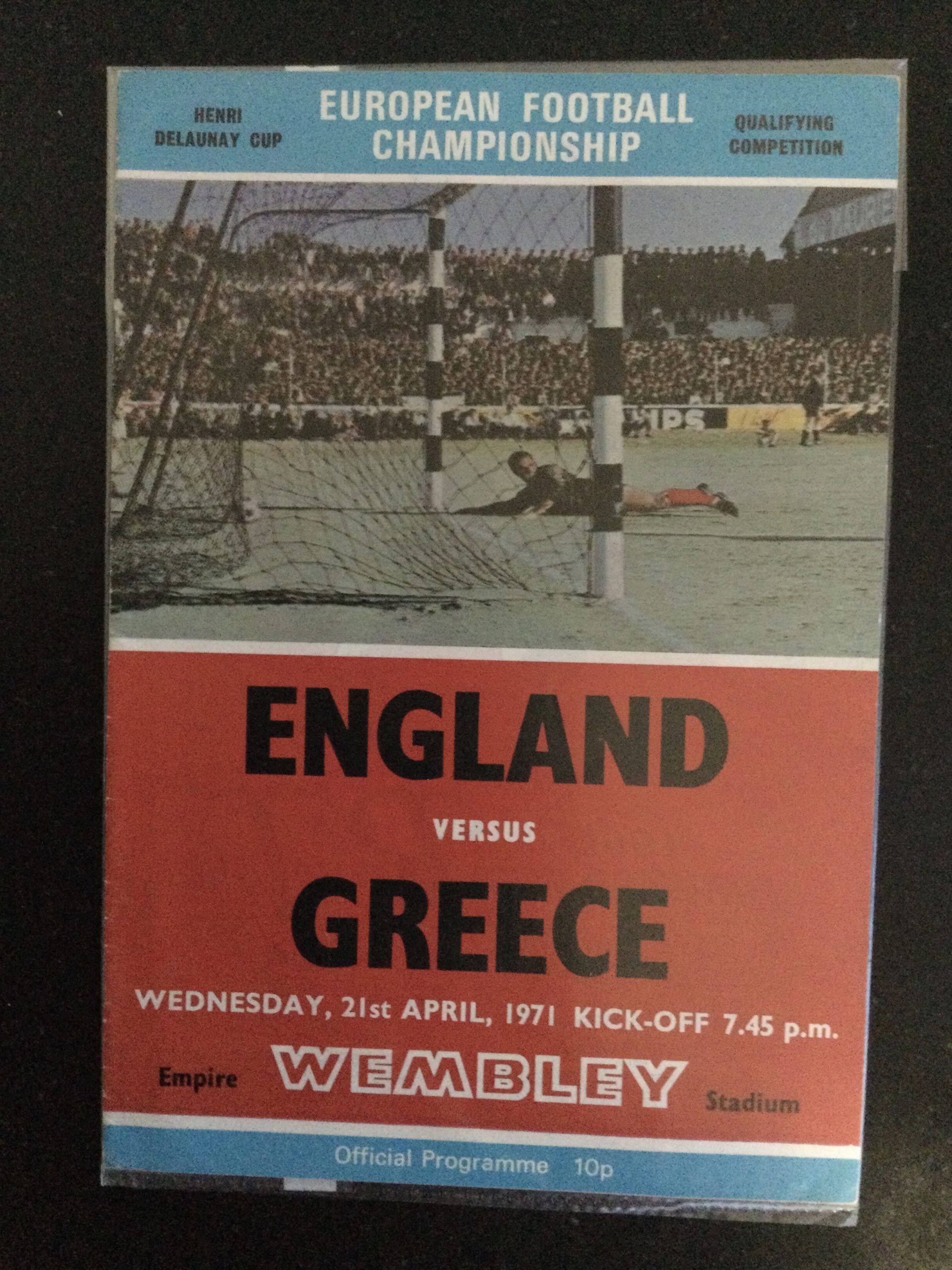 England v Greece European Championship Qualifier Match Day Programme 1971
