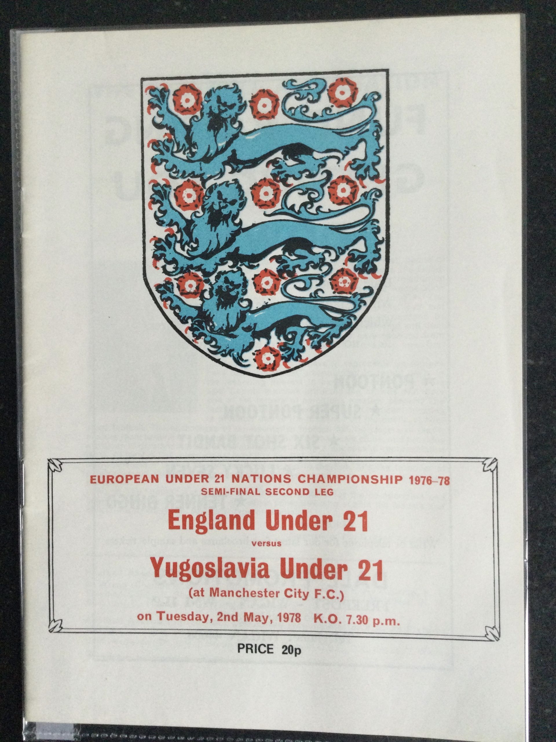 England v Yugoslavia U’21 European Champioship Semi Final Matchday Programme 1978
