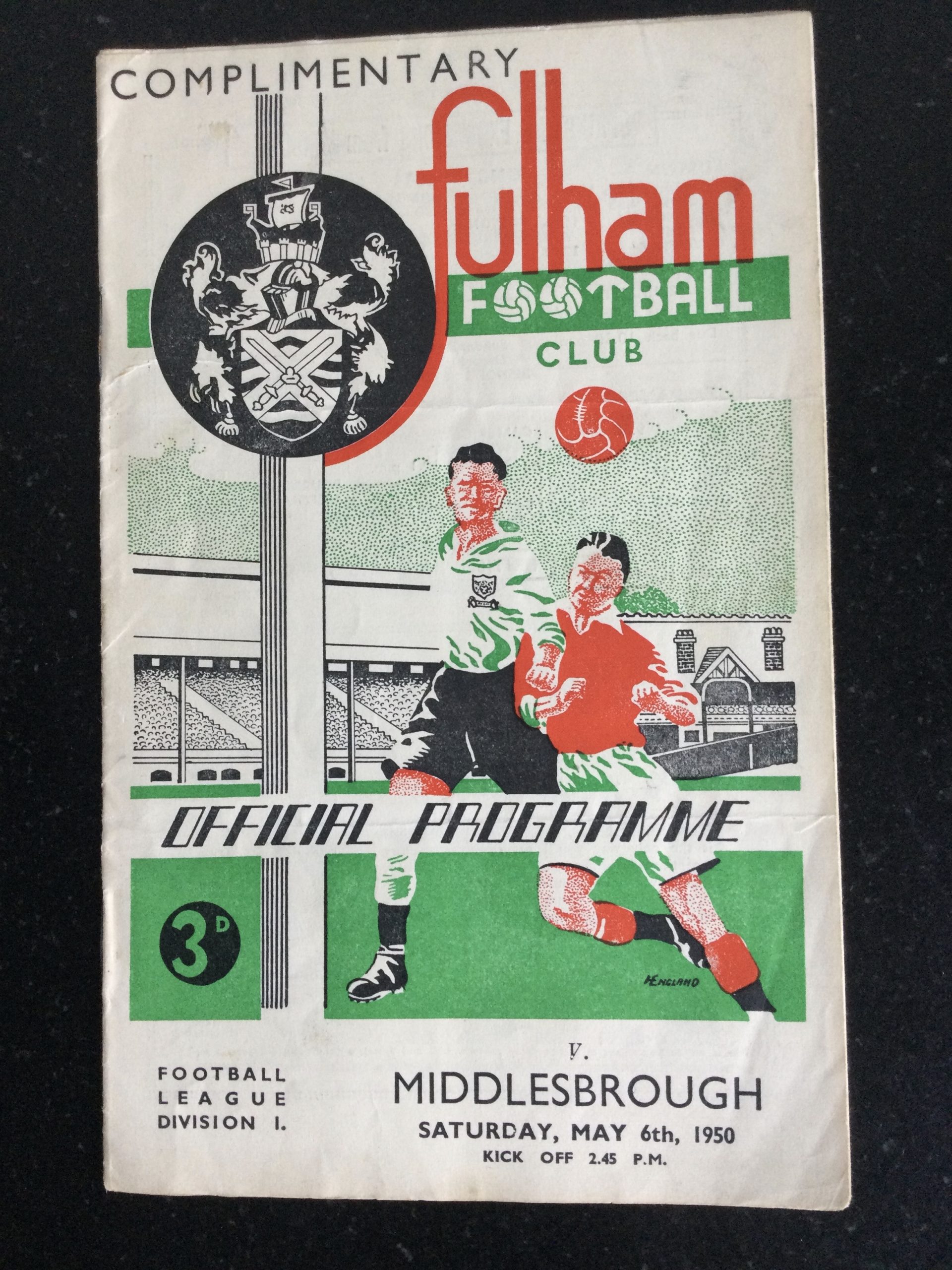 On offer an original matchday programme Fulham v Middlesbrough 06 MAY 1950