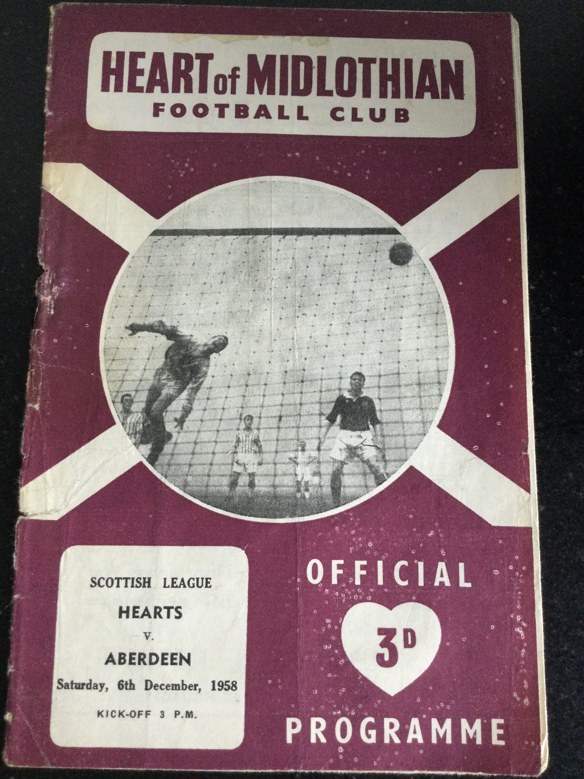 On offer an original matchday programme Heart of Midlothian v Aberdeen 06 DEC 1958