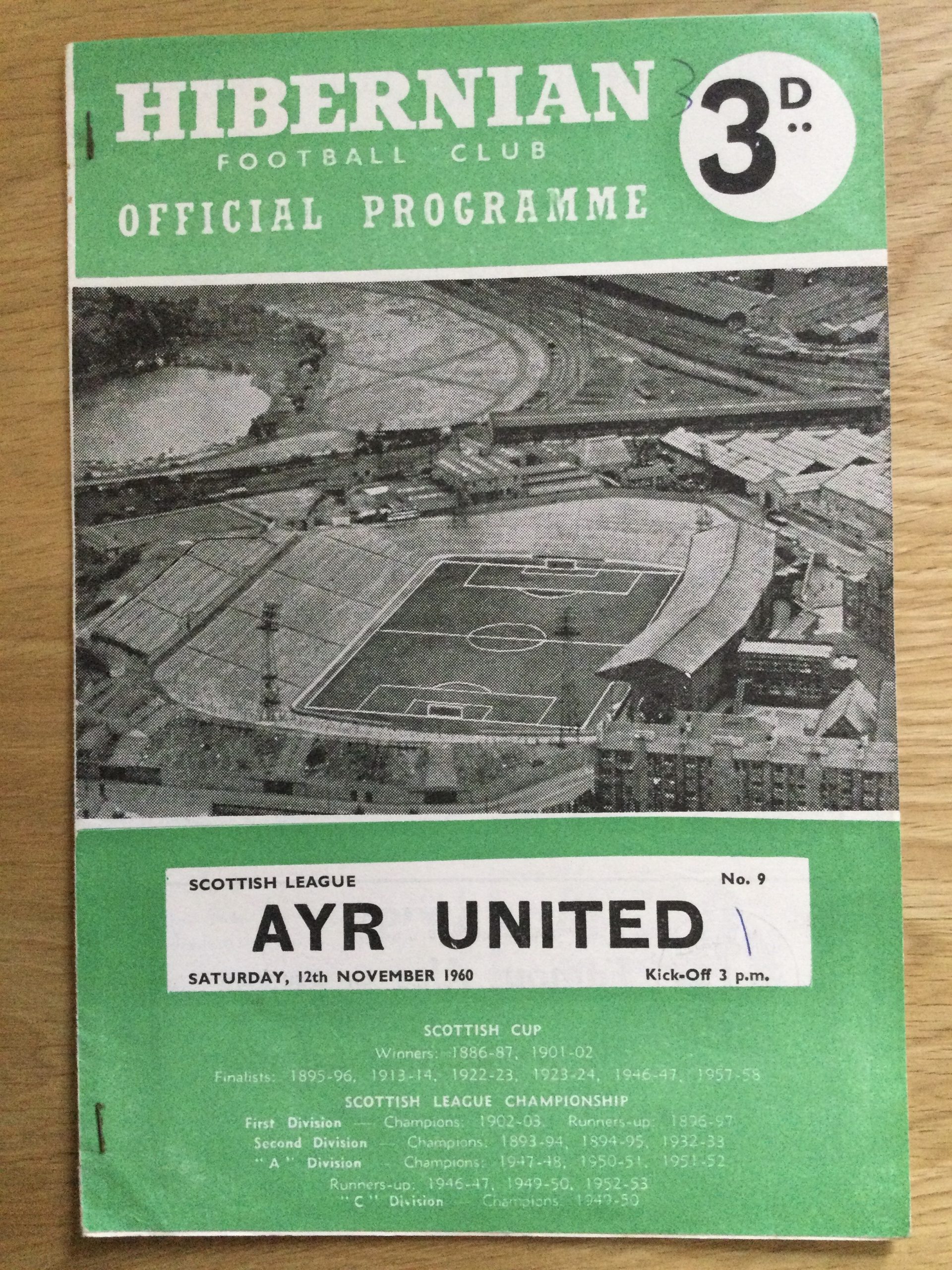 On offer an original matchday programme Hibernian v Ayr United 12 NOV 1960
