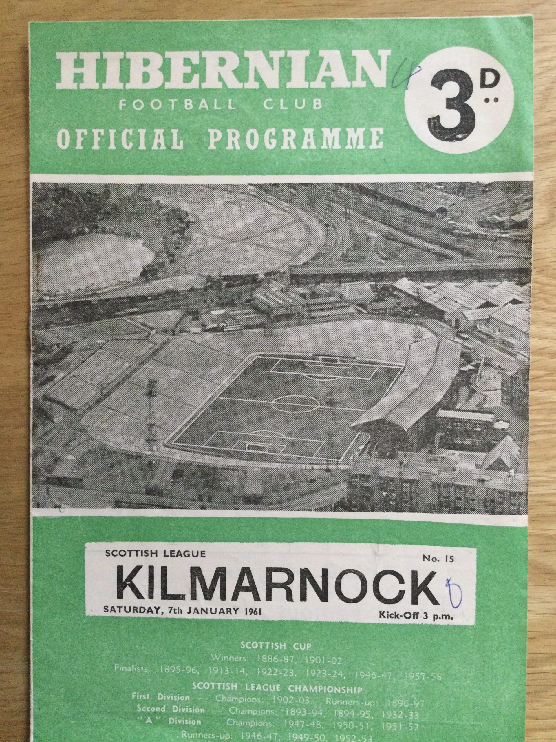 On offer an original matchday programme Hibernian v Kilmarnock 07 JAN 1961