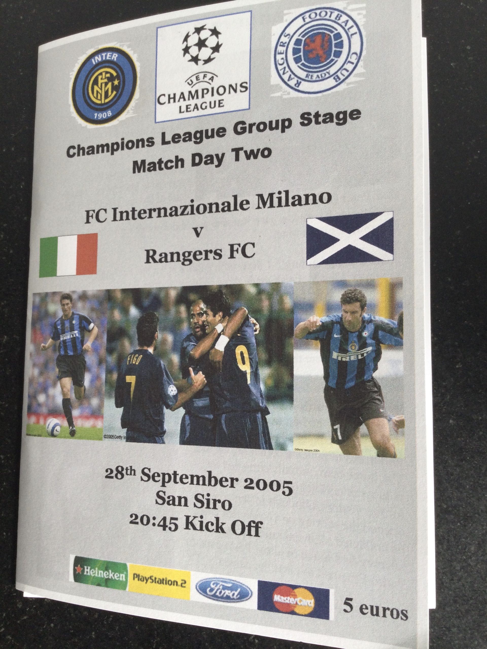 On offer an original matchday programme (Press & Unofficial Copy) Inter Milan v Rangers 28 SEP 2005