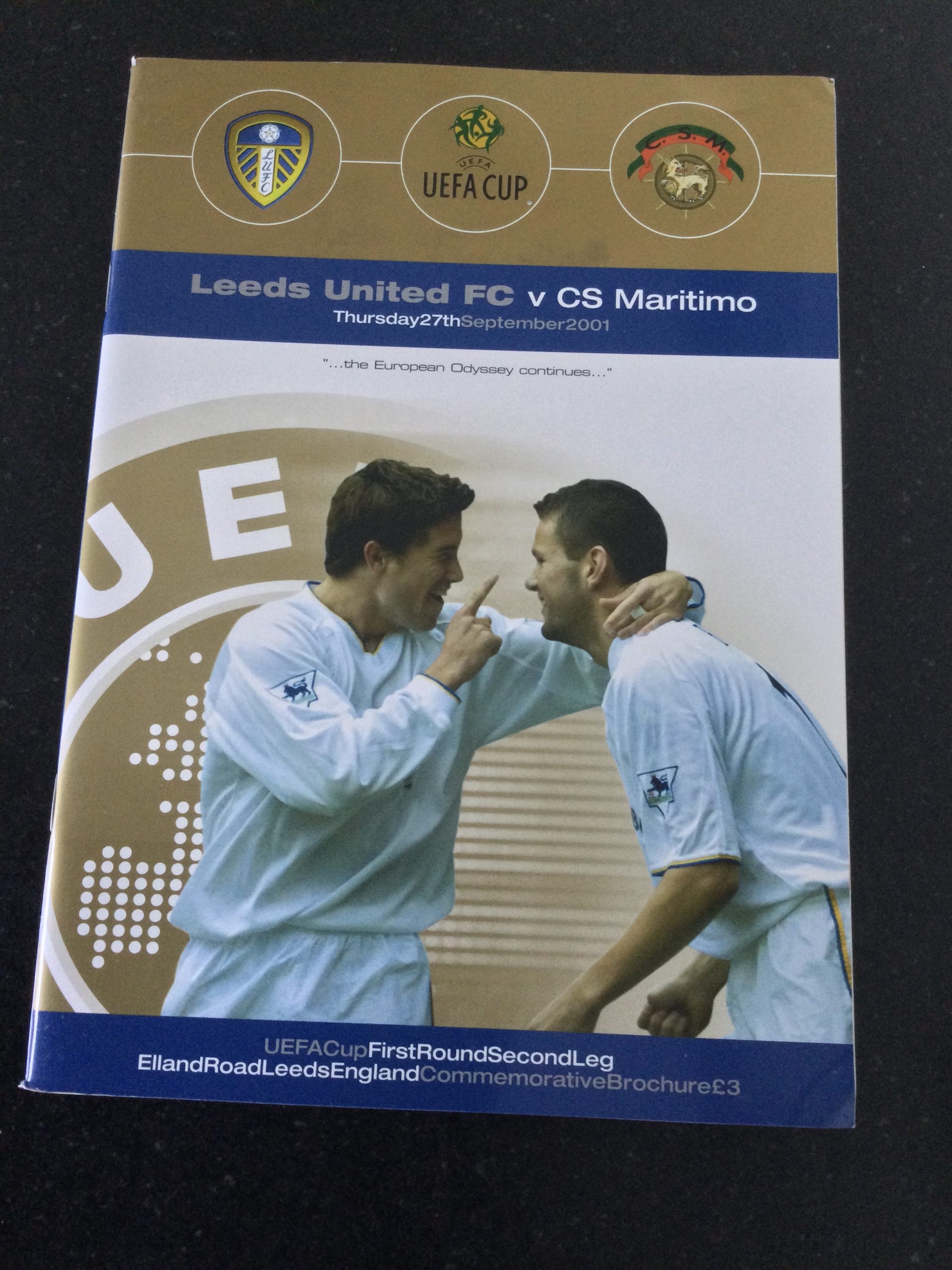 On offer original matchday programmes, Leeds United v Barcelona 24 OCT 2000, RSC Anderlecht 13 FEP 2001, CS Maritimo 27 SEP 2001, Troyes, 18 OCT 2001 and PSV Eindhoven 28 FEB 2002
