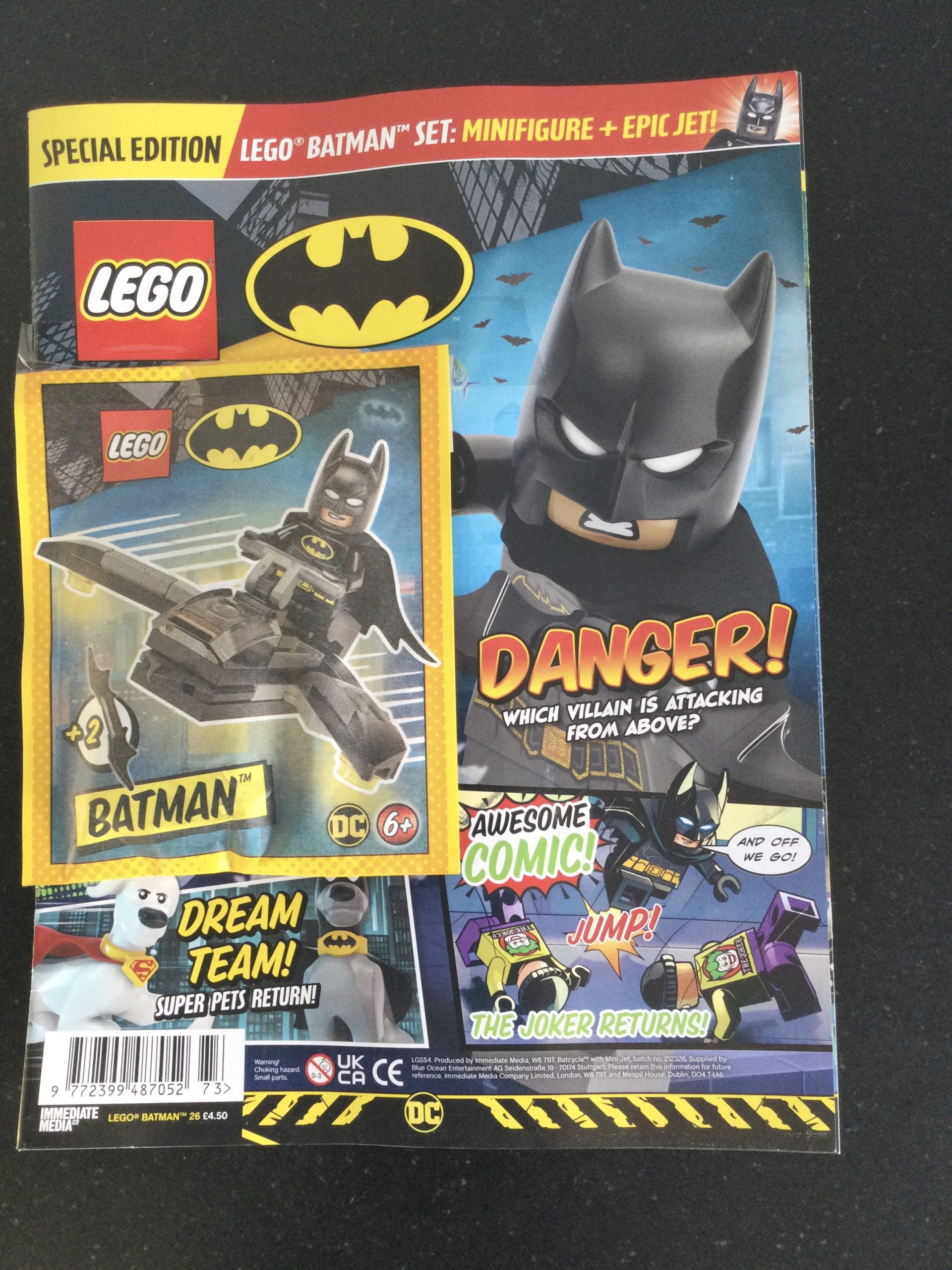 LEGO DC Comics Super Heroes Special Edition Batman Magazine No 26 c/w Promotional Polybag Sealed and Batman Minifigure and Epic Jet Model