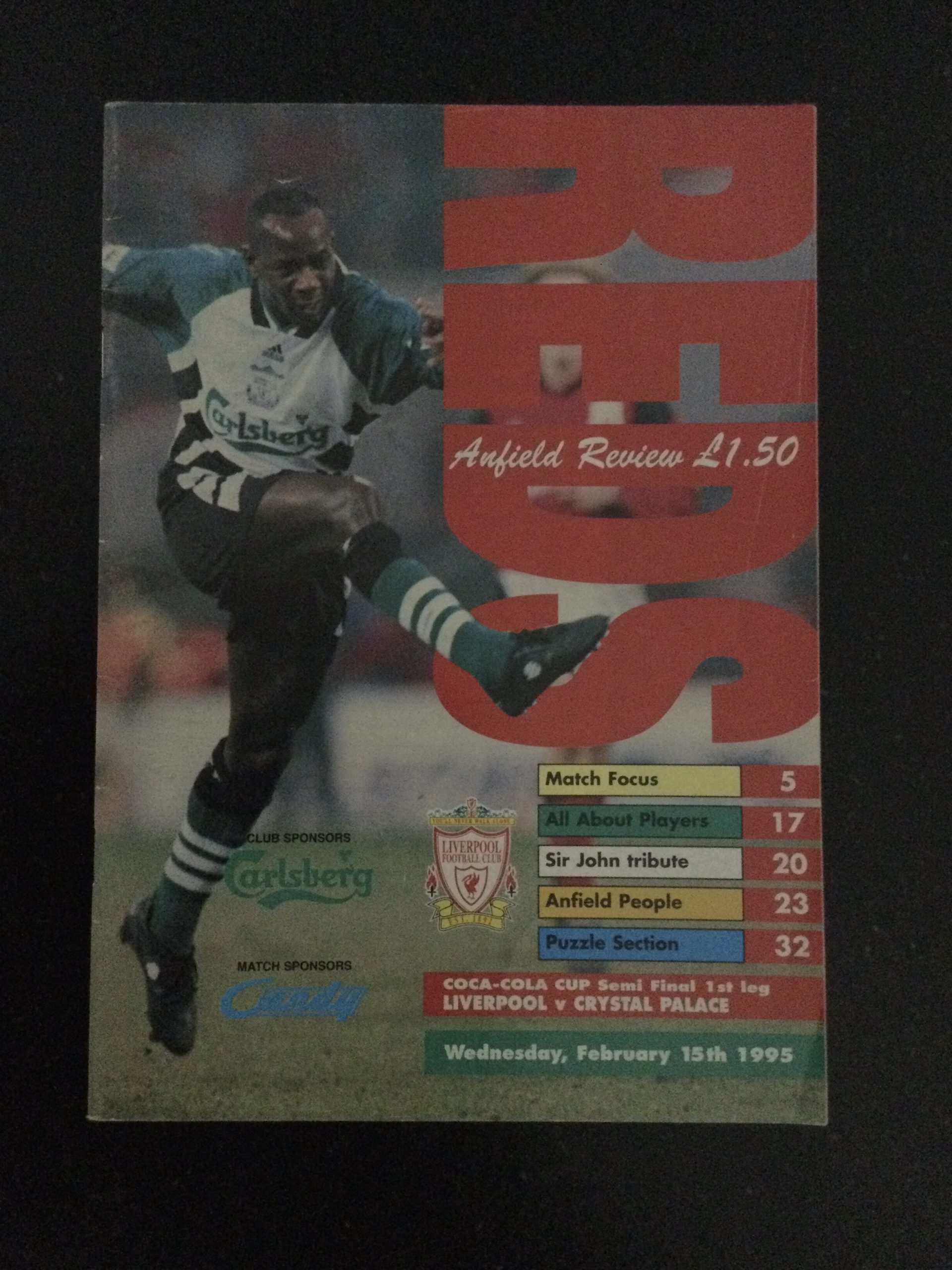 Liverpool v Crystal Palace League Cup Semi Final Matchday Programme 1995