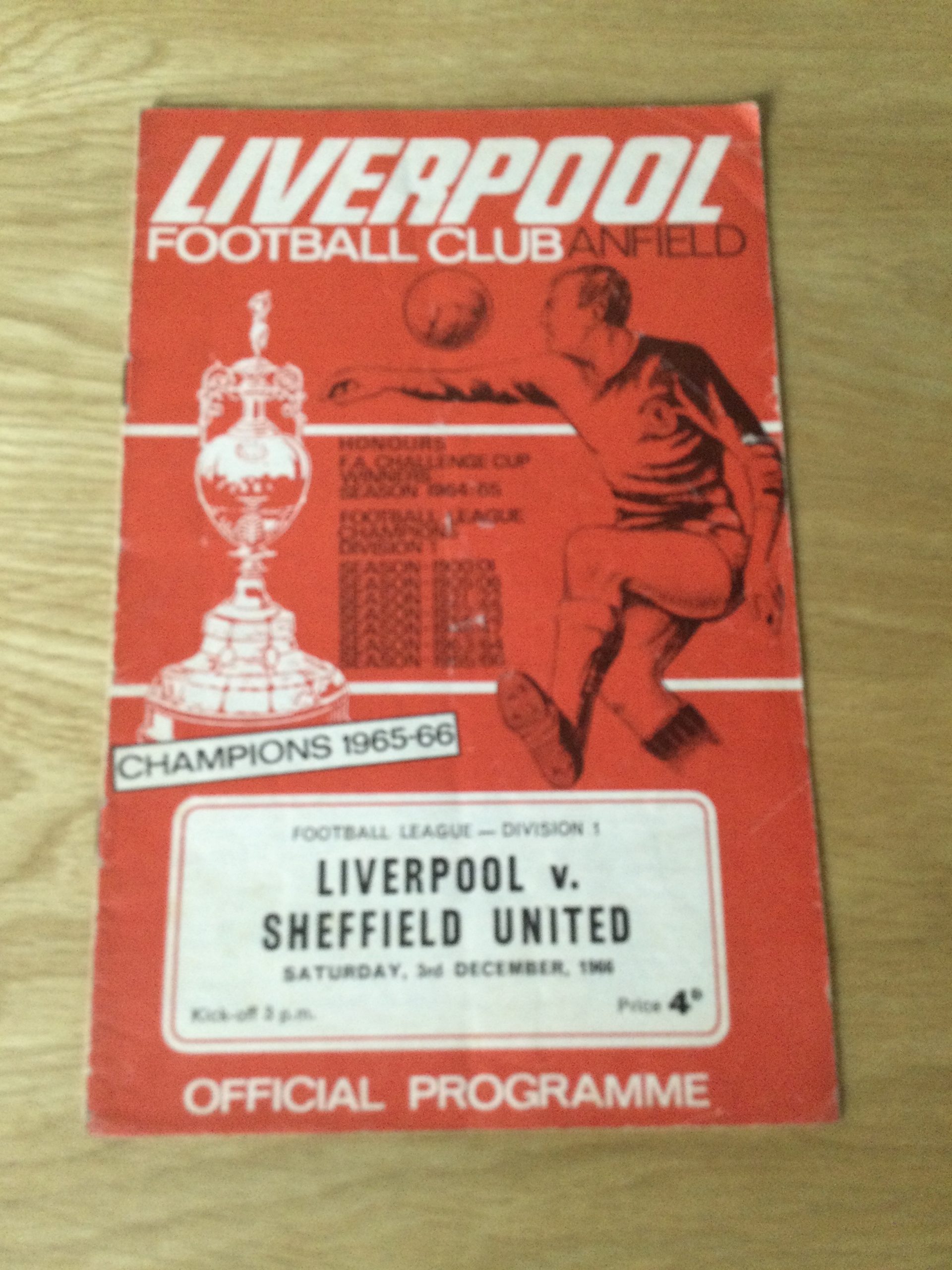 On offer an original matchday programme Liverpool v Sheffield United  03 DEC 1966