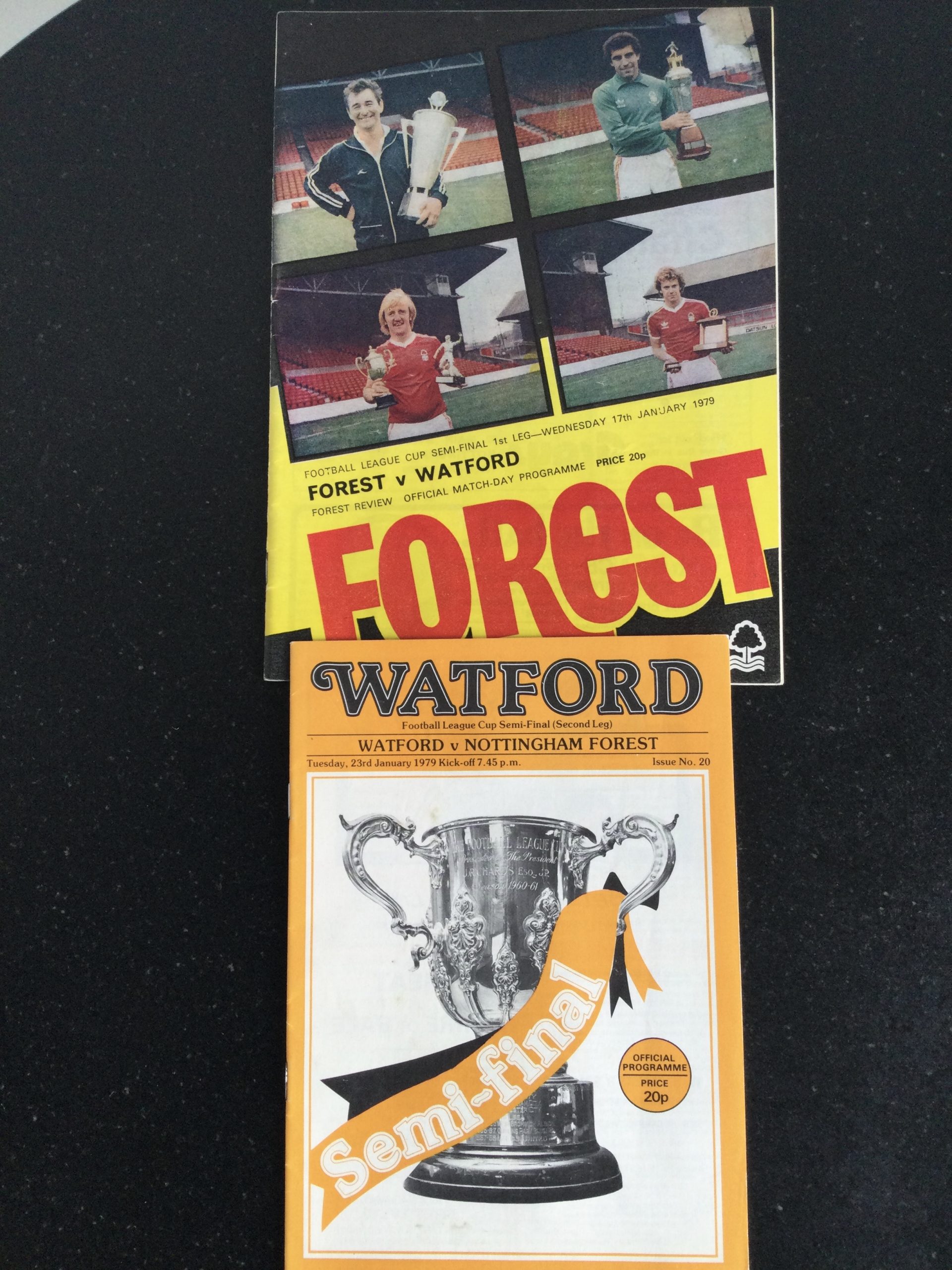 Nottingham Forest v Watford League Cup Semi Final 1st and 2nd Leg Match Day Programmes 1979
