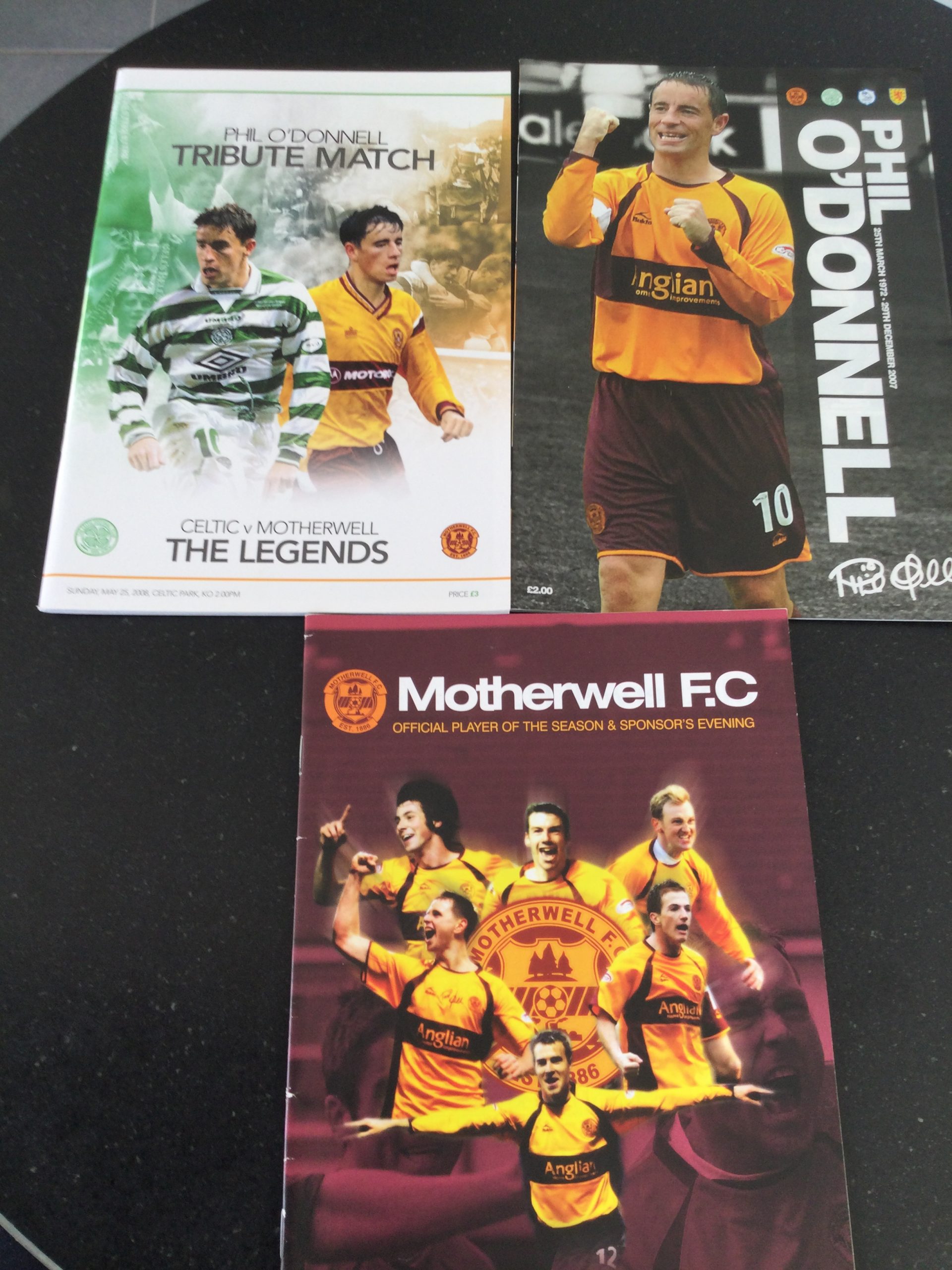 On offer an original matchday programme Celtic Legends v Motherwell Legends 25 MAY 2008 + a Phil O’Donnell Tribute + Motherwell Player of the Season & Sponsors Evening programme 11 May 2008