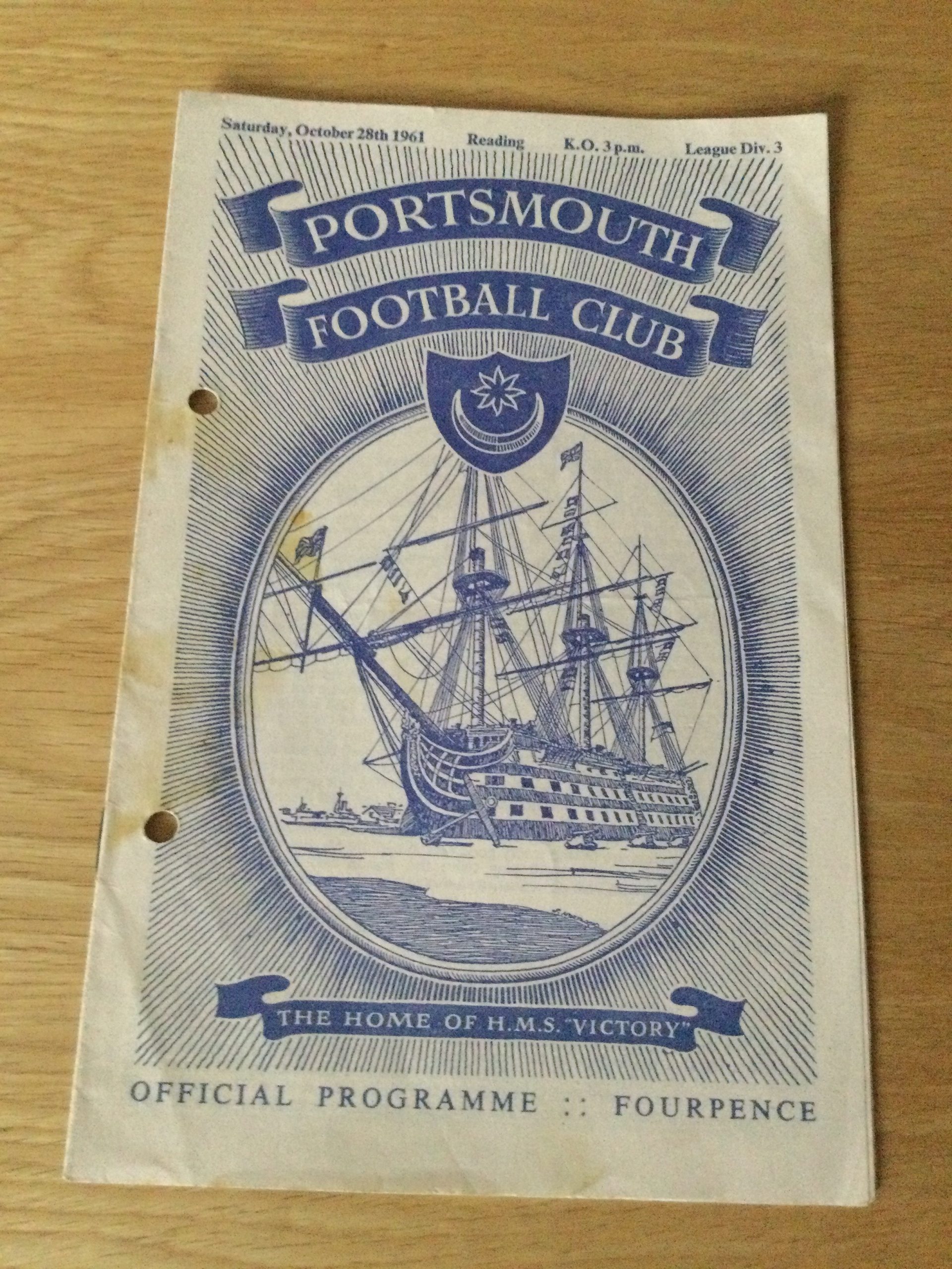 On offer an original Portsmouth v Reading matchday programme 28 OCT 1961