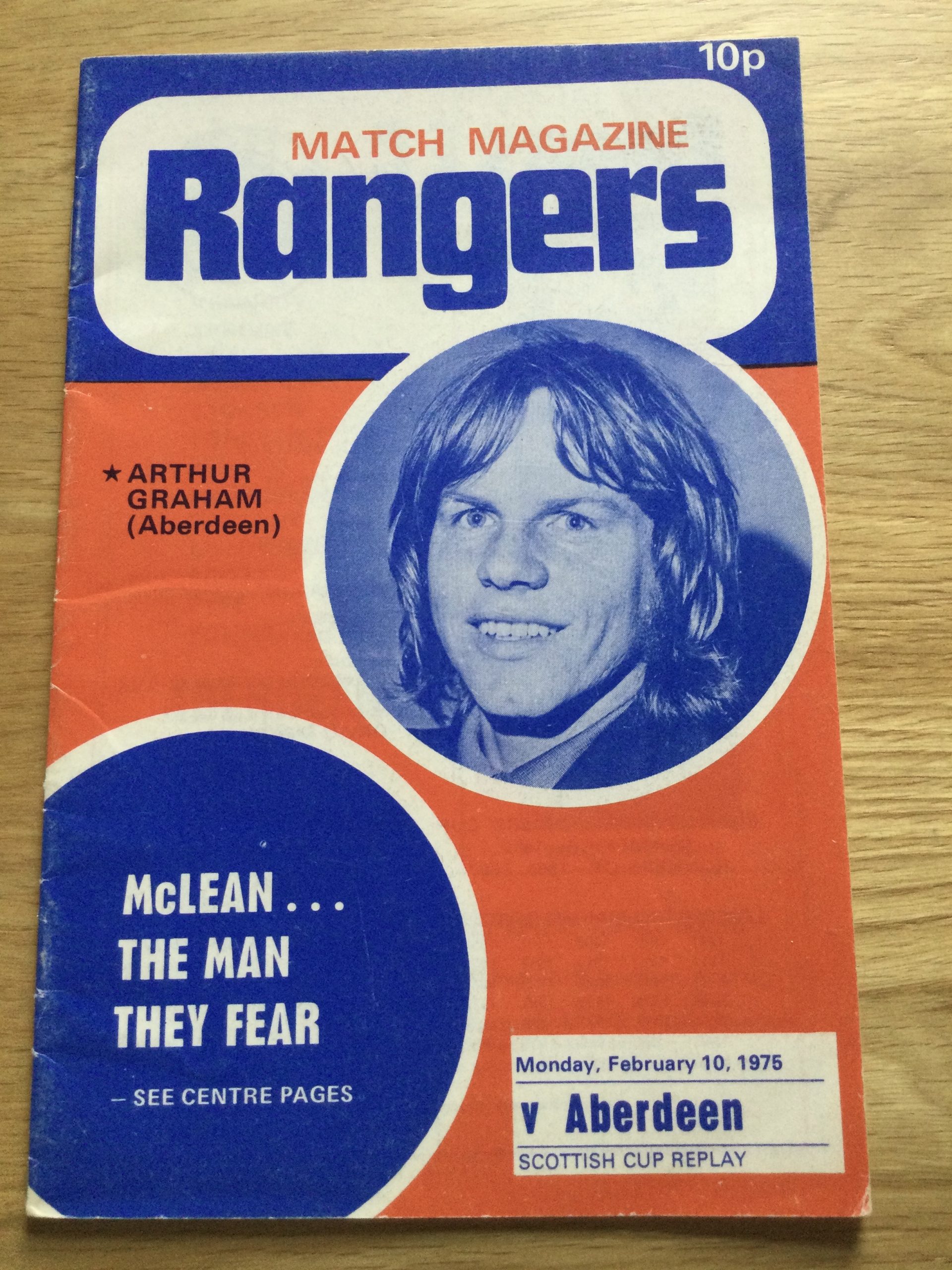 On offer an original matchday programme Rangers v Aberdeen 10 FEB 1975