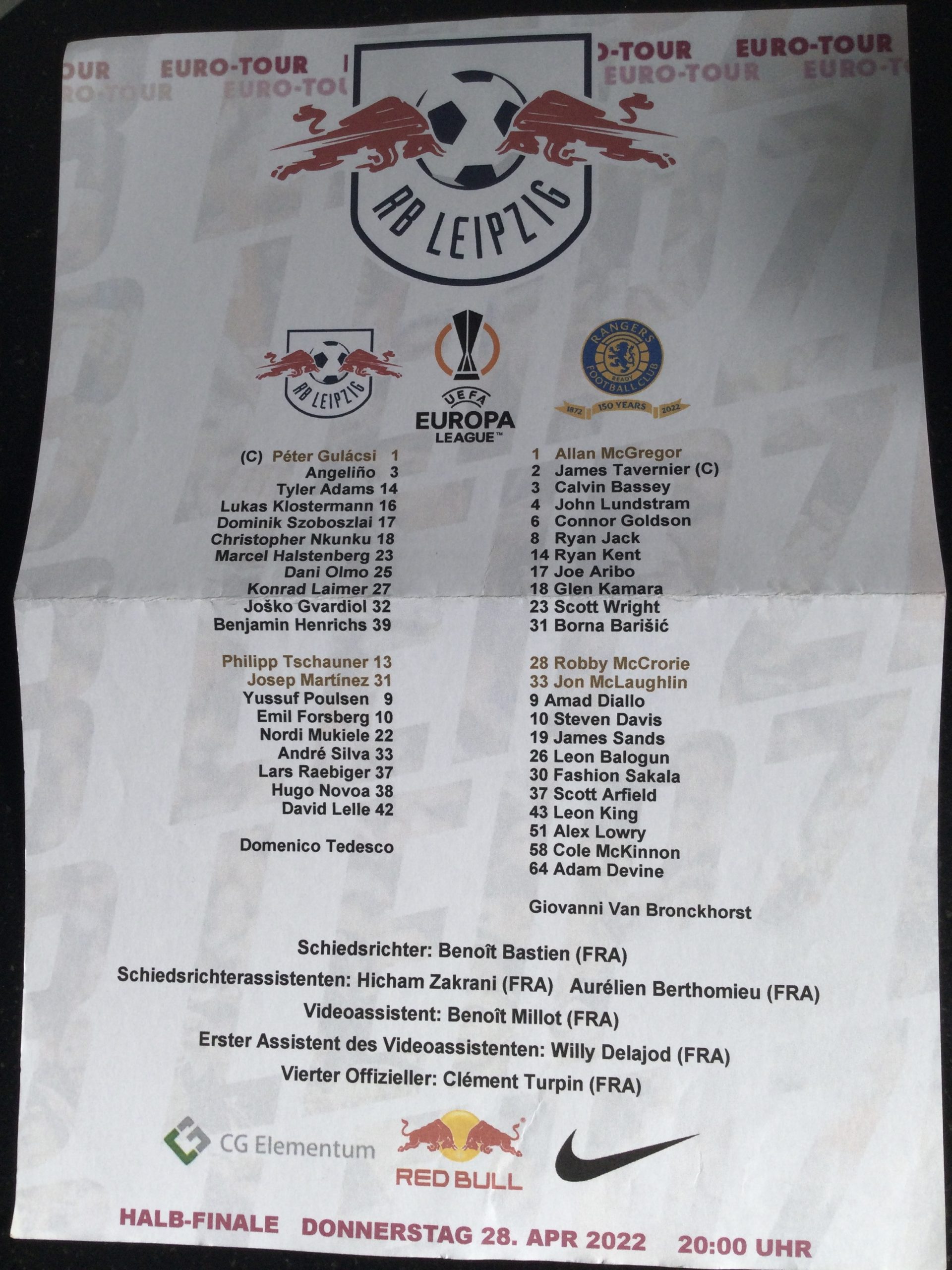 RB Leipzig v Rangers Europa League (Press Copy) Matchday Programme 2022
