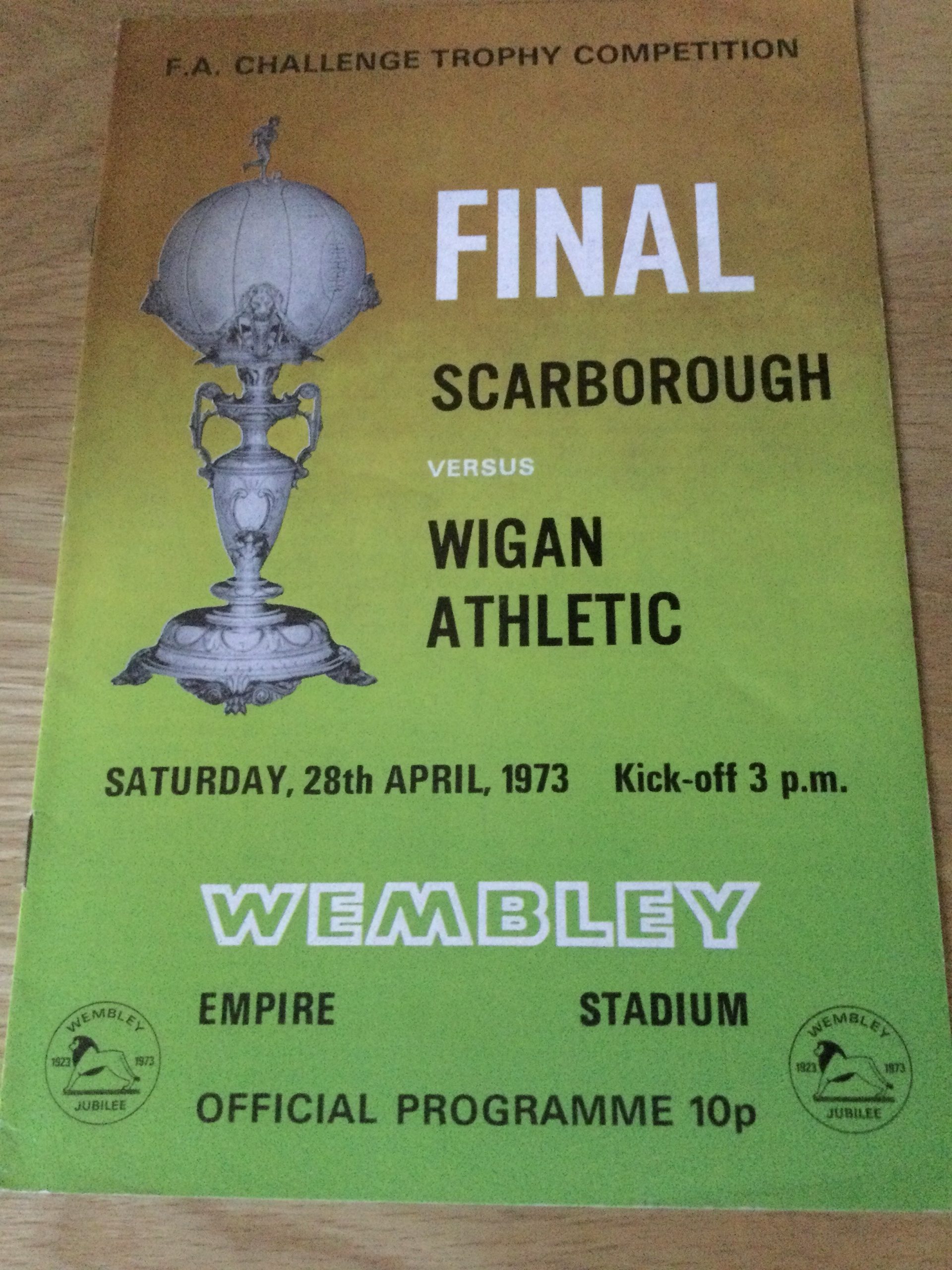 Scarborough v Wigan Athletic F. A. Challenge Trophy Final Match Day Programme 1973