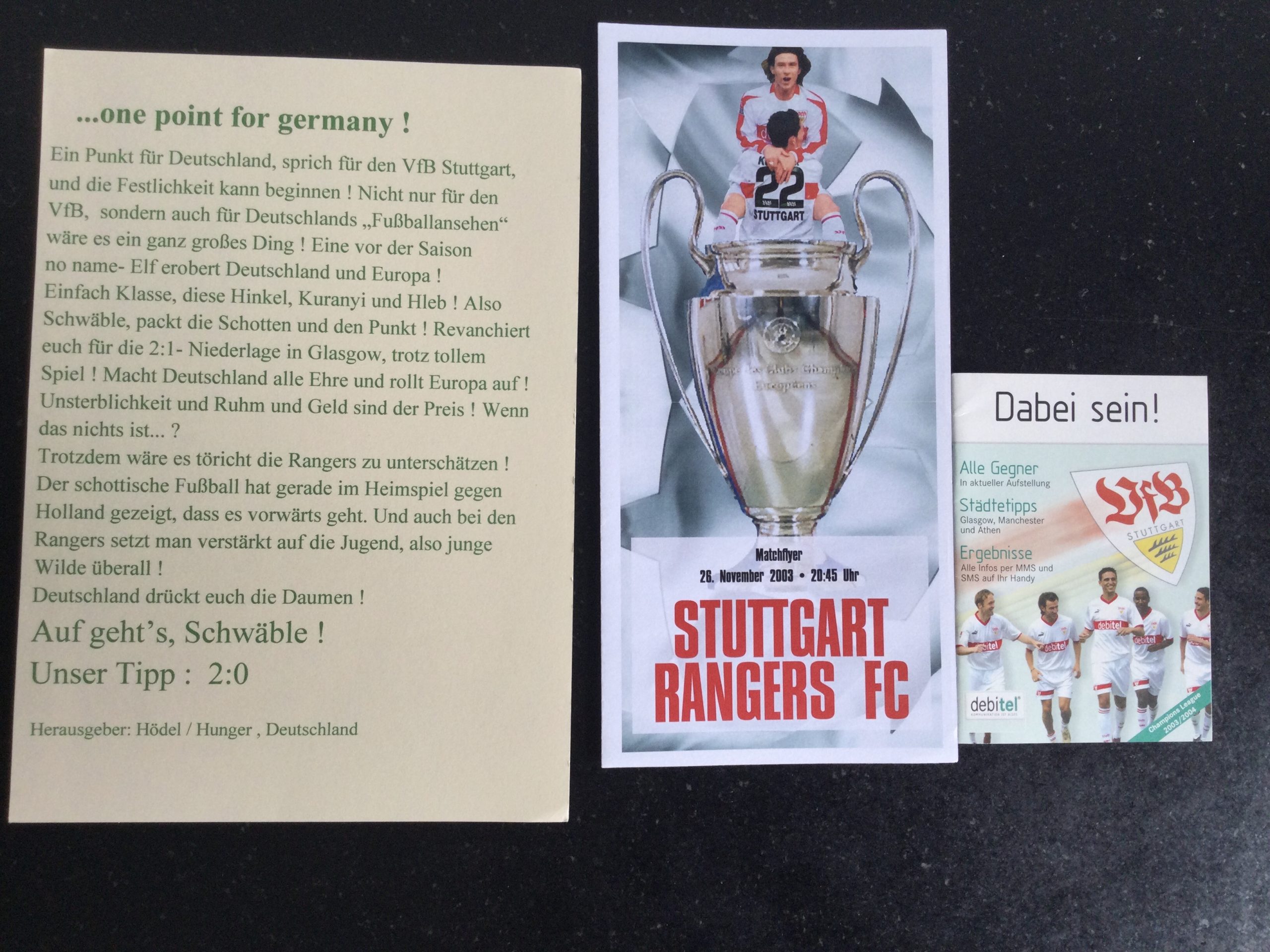 On offer an original matchday programme (Press Copy) Stuttgart v Rangers 26 NOV 2003