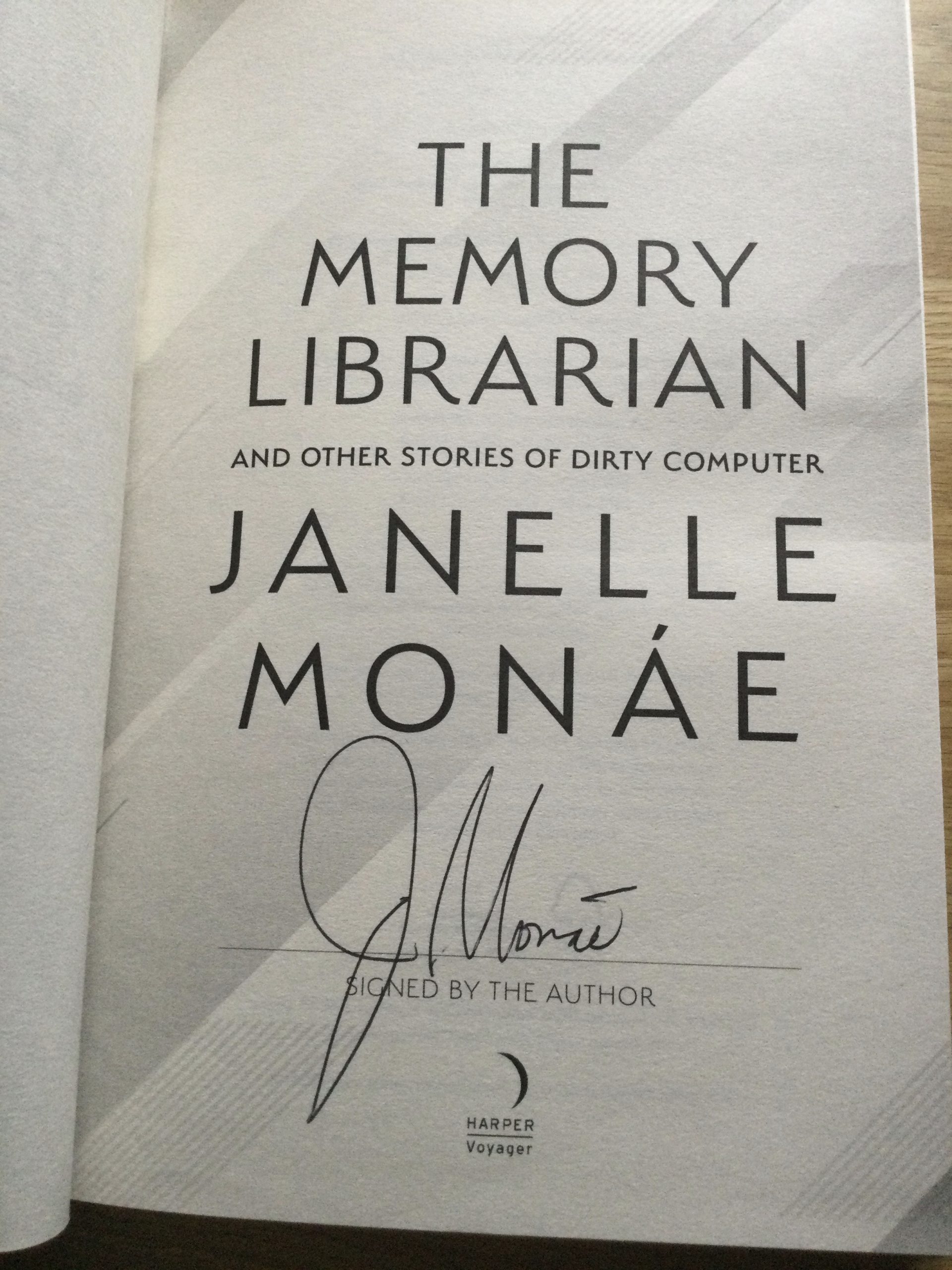 On offer a hardcover “The Memory Librarian” by Janelle Monae, signed to the title page by the author Janelle Monae