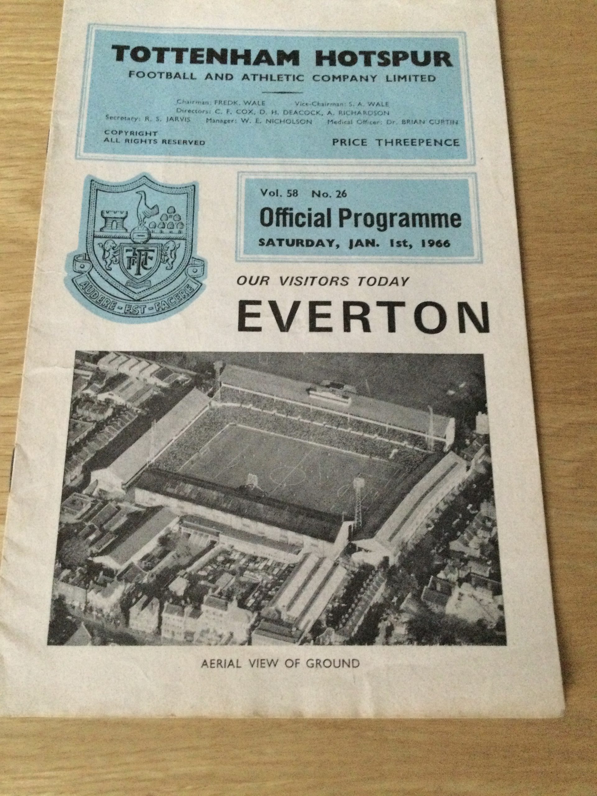 On offer an original matchday programme Tottenham Hotspur v Everton 01 JAN 1966