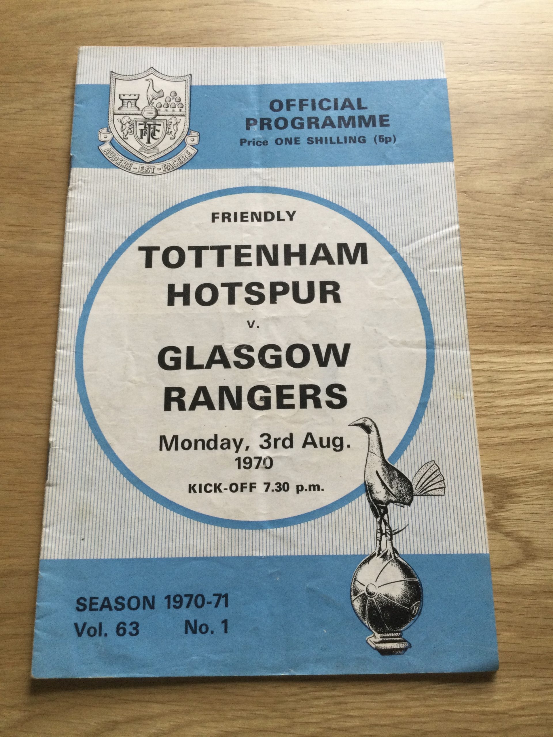 Tottenham Hotspur v Rangers Friendly Matchday Programme 1970