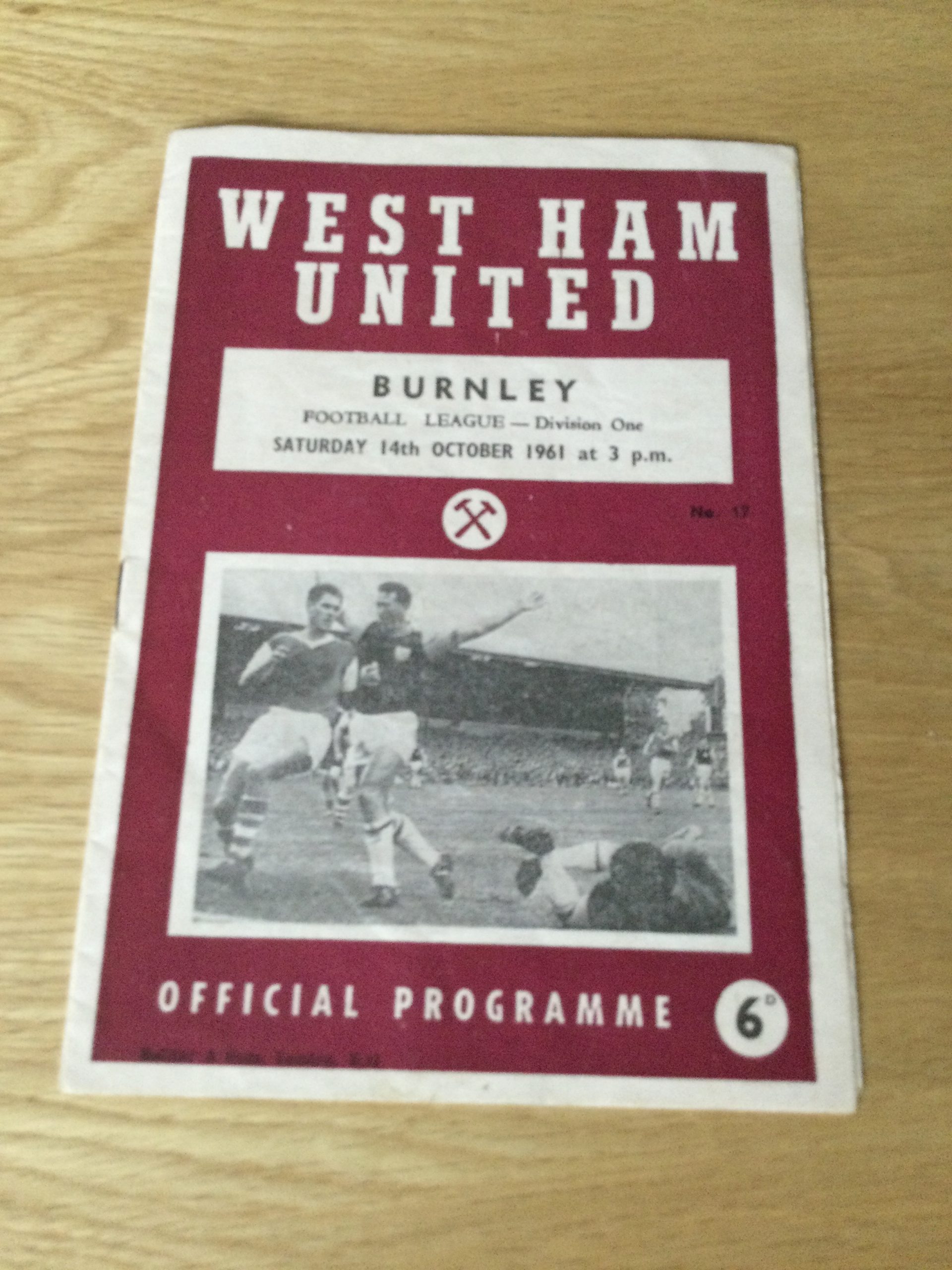 On offer an original matchday programme West Ham United v Burnley  14 OCT 1961